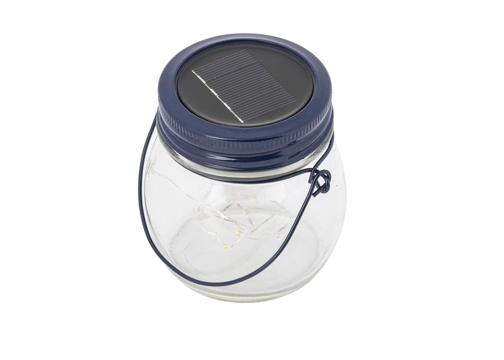 Tablecraft Wanderlust Collection LED Solar Lantern, Glass with Blue Top, 3.75" x 3.375" x 3.625"