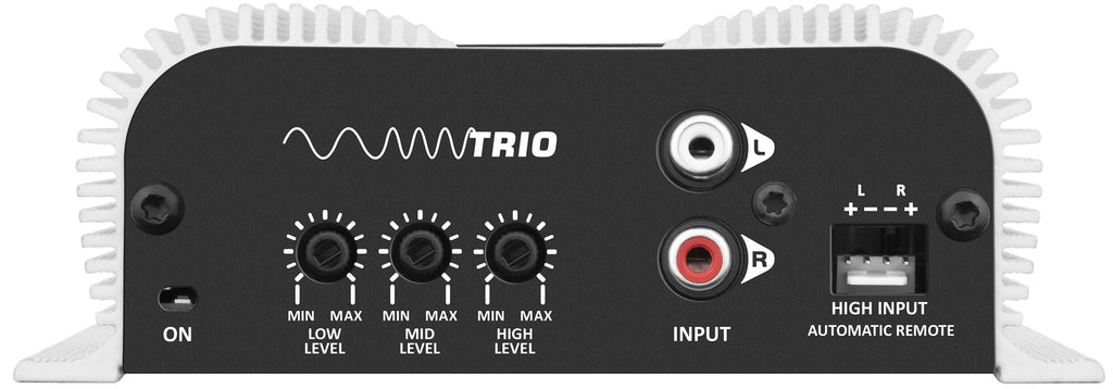 The 400 TRIO amplifier's individual level works for each of the channels so you can adjust the volume of each component individually from the module itself. The 400 TRIO module was also developed to meet the needs of some specific sectors in our case the famous trio speakers. Taramps amplifier has two audio inputs: the classic and well-known RCA , and the wired input, with ART system , eliminating the need for an RCA converter. ||