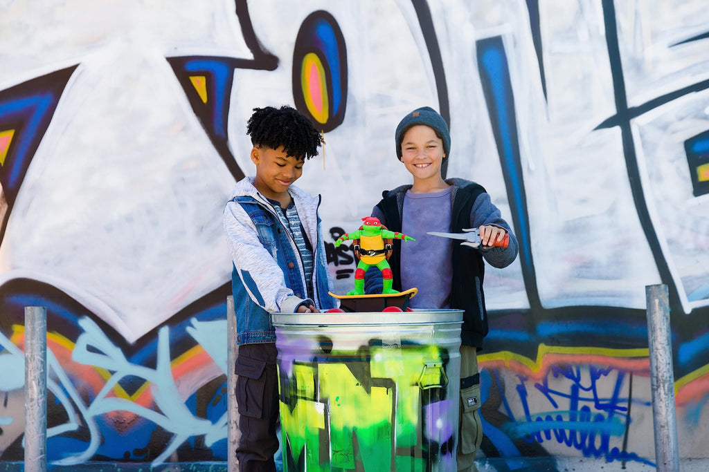 Teenage Mutant Ninja Turtles Raphael Cowabunga Skate RC - Imitates Real Skate Tricks - 2.4 GHz Remote Control - Ages 3+AUTHENTIC SKATER: TMNT movie-inspired full-function 2.4 GHz RC vehicle skates smooth and imitates real skateboard tricks! Shred with Mikey!SKATING FUN: Use the nunchuck-shaped controller to navigate in any direction. Side-to-side, forward and backward. Mikey does it all!DESIGNED FOR PLAY: Don’t worry about falling, this RC is designed to get right back up! Cowabunga!PORTABLE: Bring this rad RC with you everywhere! Perfect for playtime anywhere!INDOOR & OUTDOOR TOY: RC Mikey toy is perfect for indoor and outdoor adventures. Ideal as a gift. Fun guaranteed!
