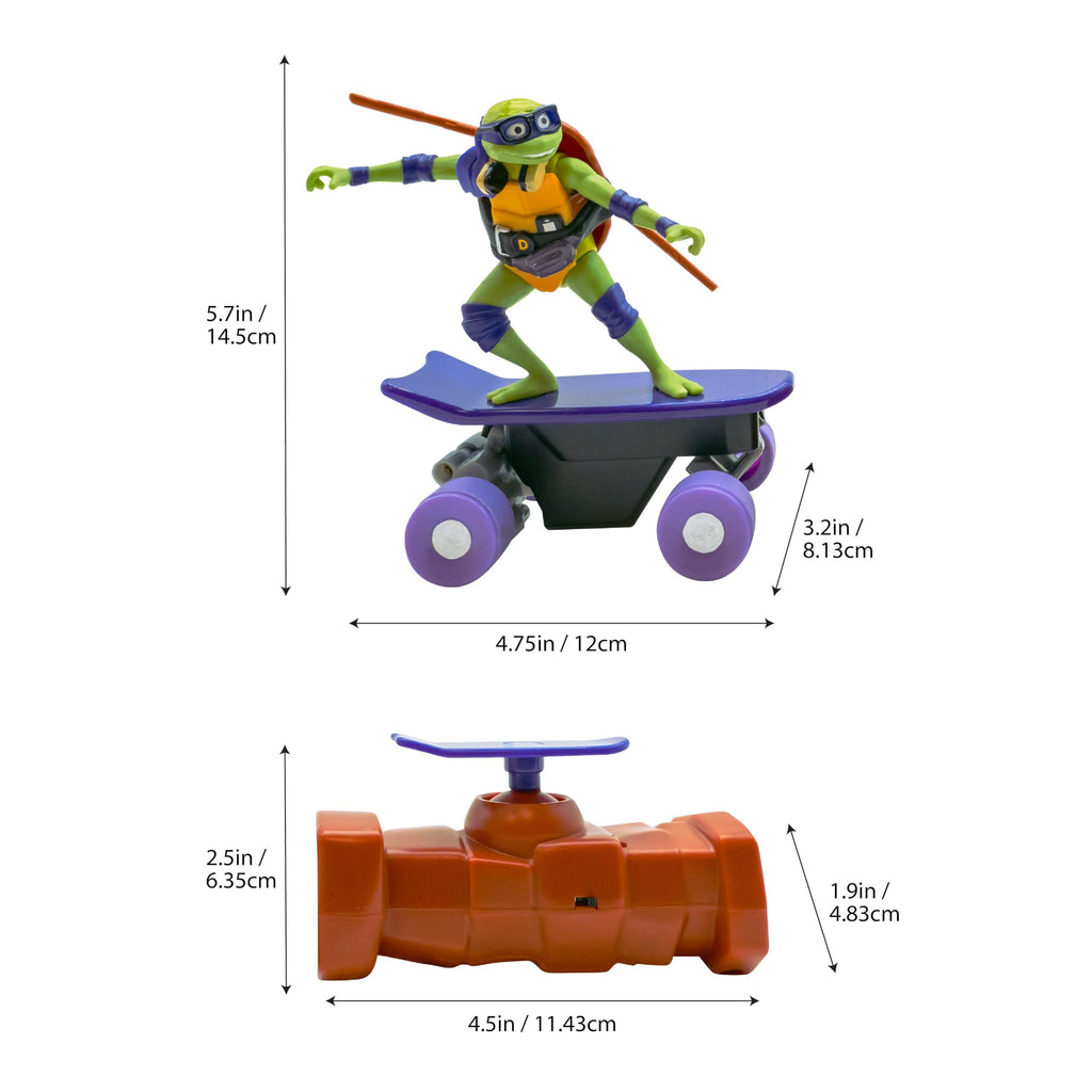 Teenage Mutant Ninja Turtles Toy, Donatello Half Pipe RC Skate Vehicle, Mutant Mayhem Remote Control TMNT Toy for Kids, Ages 3+REMOTE CONTROL: Full-function 2.4 GHz RC vehicle built to skate smooth and perform tricks on any surface just like a real skater. TMNT movie-inspired design with Leonardo.STEER: Use the skateboard-shaped remote controller to navigate, control speed and shift.TURTLE: Available with Leonardo, Michelangelo, Donatello, and Raphael. Collect them all.PORTABLE: Bring this awesome ninja toy RC with you everywhere. Perfect for playtime on-the-go.SKATEBOARD RC: Appropriate for ages 5 and up