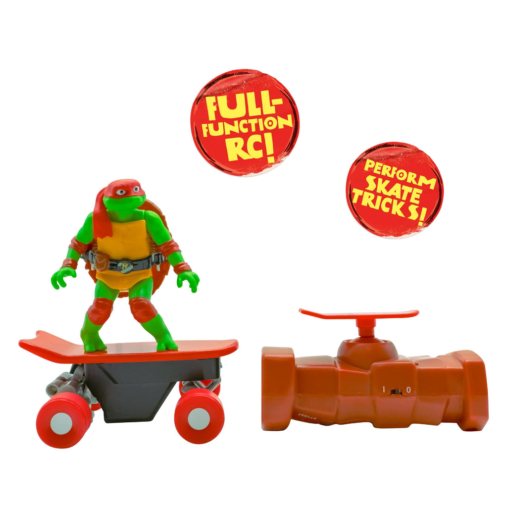 Teenage Mutant Ninja Turtles Toy, Raphael Half Pipe RC Skate Vehicle with Tricks, 2.4 GHz Remote Control TMNT Ninja Turtle Toy, Mutant Mayhem, Ages 5+REMOTE CONTROL: Full-function 2.4 GHz RC vehicle built to skate smooth and perform tricks on any surface just like a real skater. TMNT movie-inspired design with Leonardo.STEER: Use the skateboard-shaped remote controller to navigate, control speed and shift.TURTLE: Available with Leonardo, Michelangelo, Donatello, and Raphael. Collect them all.PORTABLE: Bring this awesome ninja toy RC with you everywhere. Perfect for playtime on-the-go.SKATEBOARD RC: Appropriate for ages 5 and up