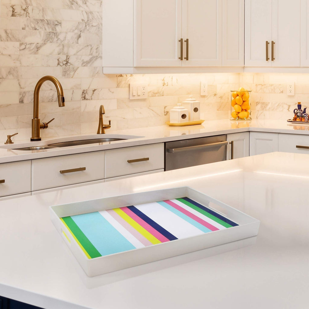 Trina Turk Rectangle Serving Tray-Indoor & Outdoor Platter for Home Entertaining, Cocktail Hour, Snacks, Decor Display for Jewelry, Candles, Barware, & Perfume, 14"x19", Stripes