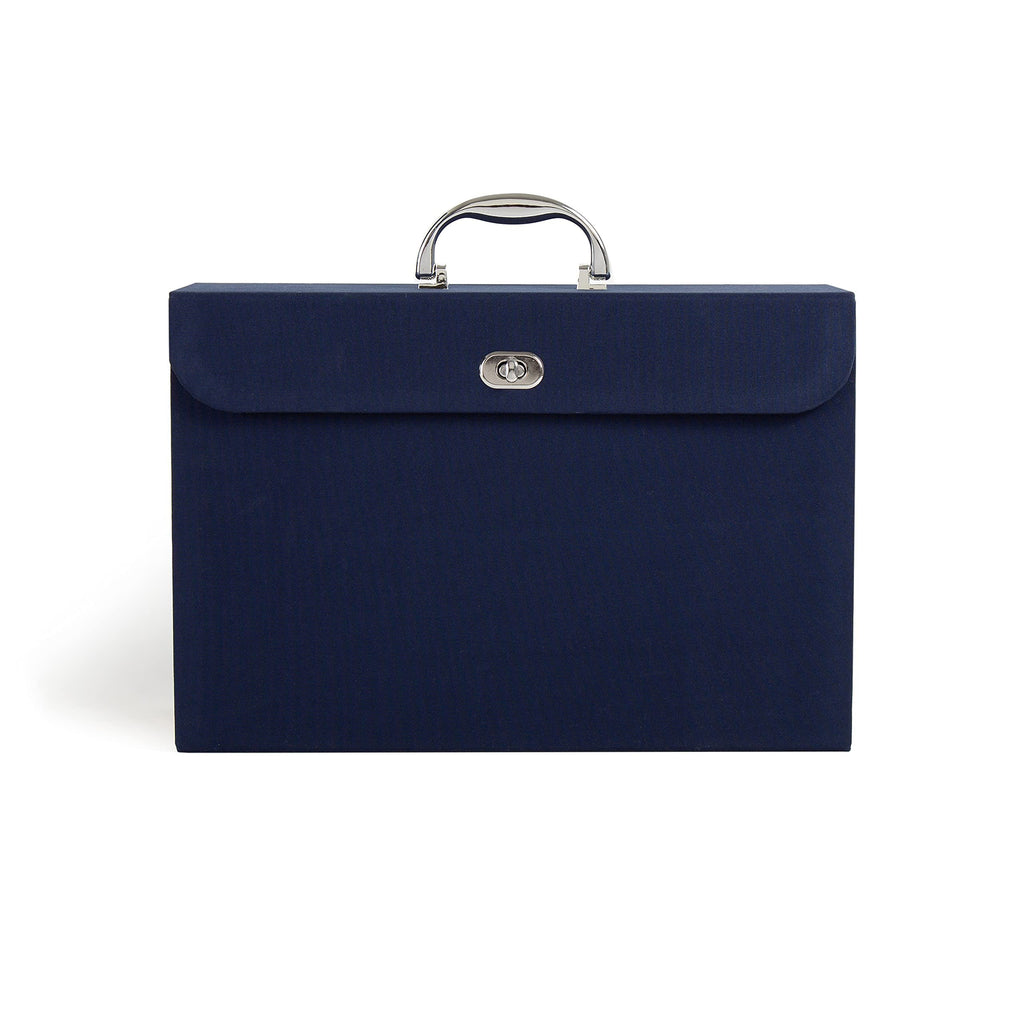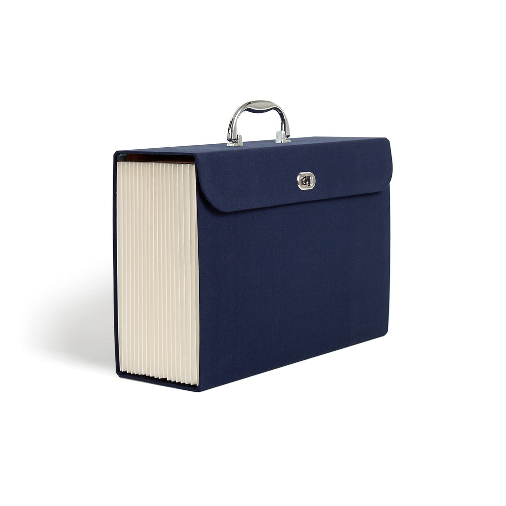 - The navy blue exterior of the 15.4” by 10.5” 19-pocket folder and its silver-tone hardware communicates professionalism while the colorful floral interior design reflects your personal taste