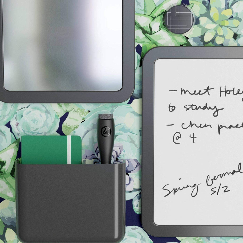 Get everything you need to organize your locker with this Locker Accessory Kit by U Brands. Includes (1) magnetic dry erase board, (1) mirror, (1) utility cup for storage, (2) fashion magnet, and (1) black ink dry erase marker with built-in felt eraser. Each piece has a magnetic backing to easily mount to the inside of a locker or onto any magnetic surface. Arrange these items any way that suits your needs! Stay on track with important reminders and take notes on the whiteboard or post favorite photos to the premium magnetic surface. Combine with other U Brands Locker Style products to create a personalized look for a great school year.