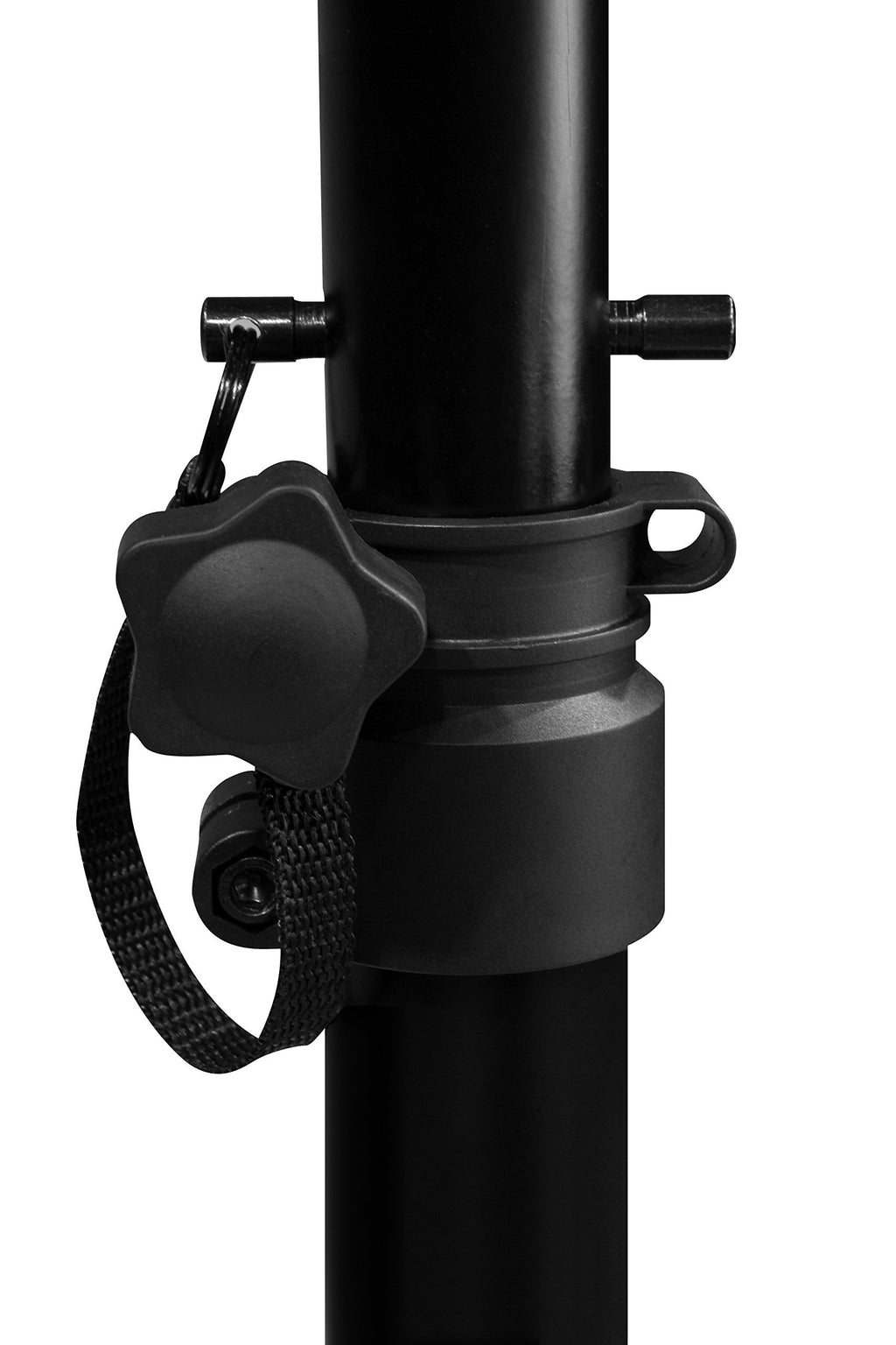 - Height-adjustable stand for studio monitors. Locking pin ensures stable and accurate height positions. Levelling floor spikes and rubber feet included. Low-profile base can be easily positioned into tight spaces