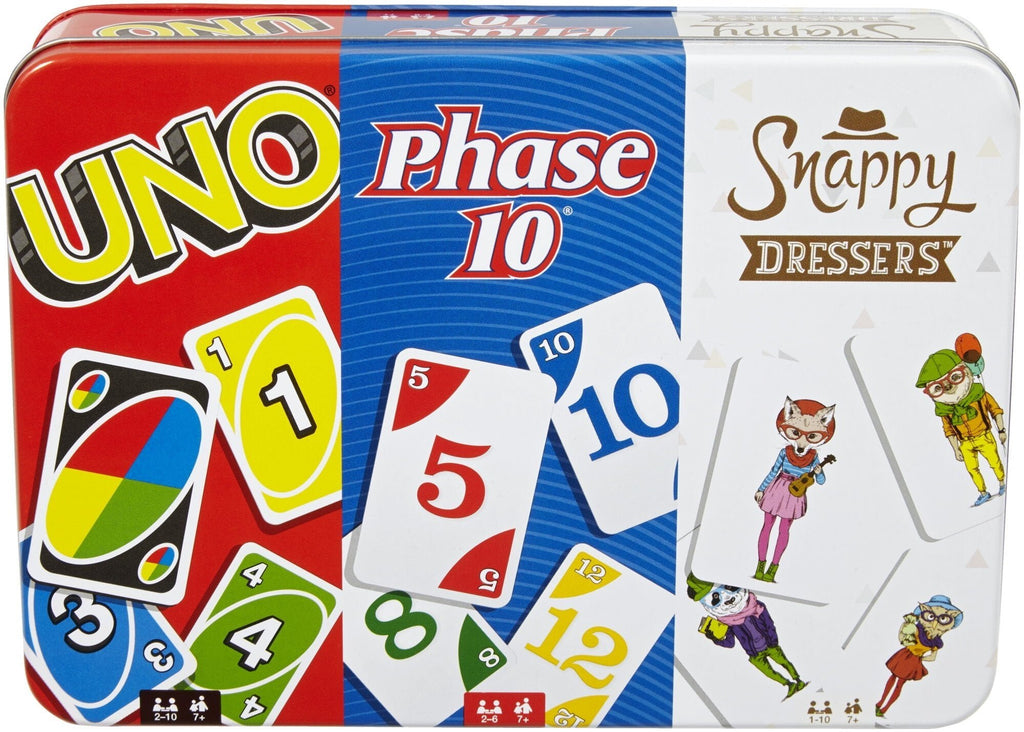 UNO, Phase 10, and Snappy Dressers Collector Tin