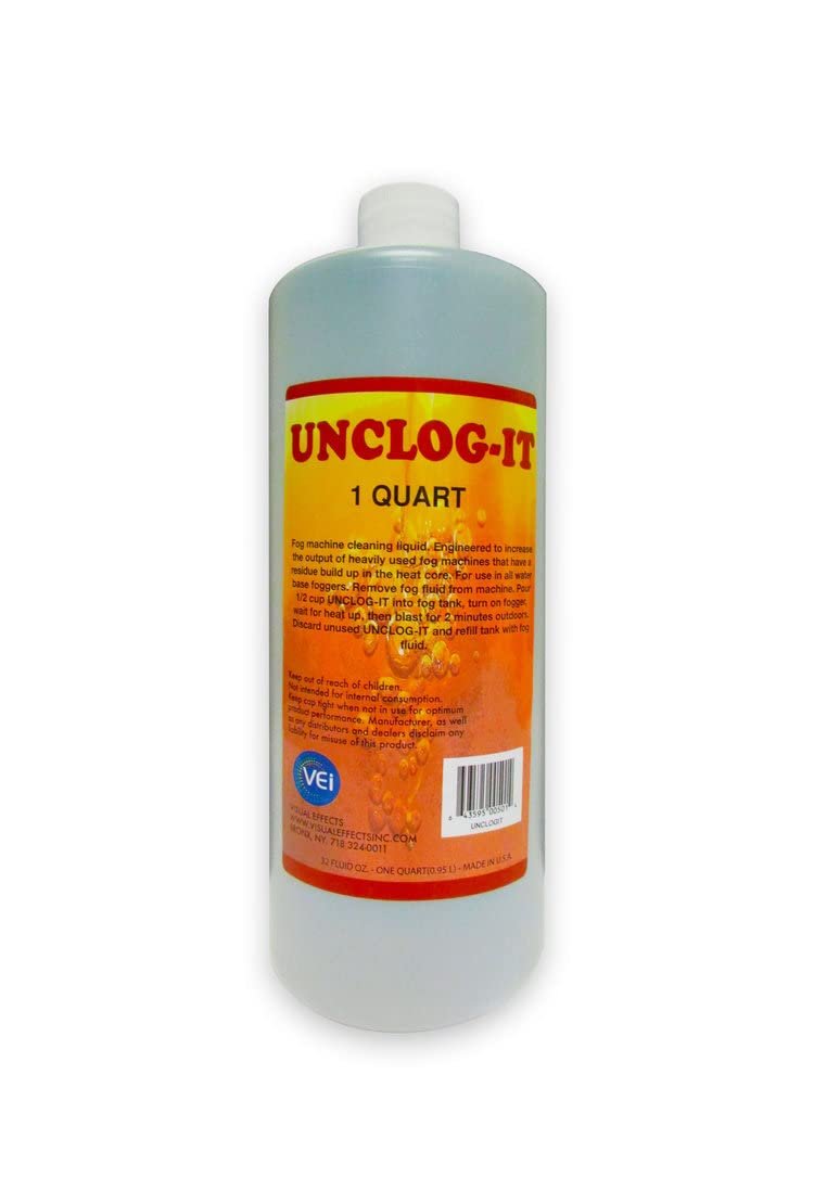 - Unclogit 1-Quart This cleaning solution is made for all water base fog machine and is all you need to keep your fog machine in shape.