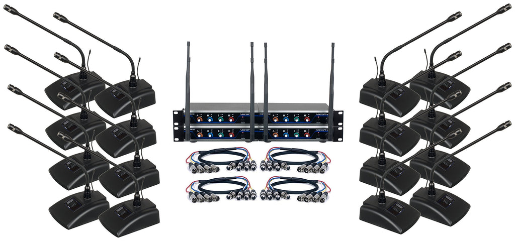 - Sixteen wireless conference microphones each channel has a Dedicated XLR output and volume control