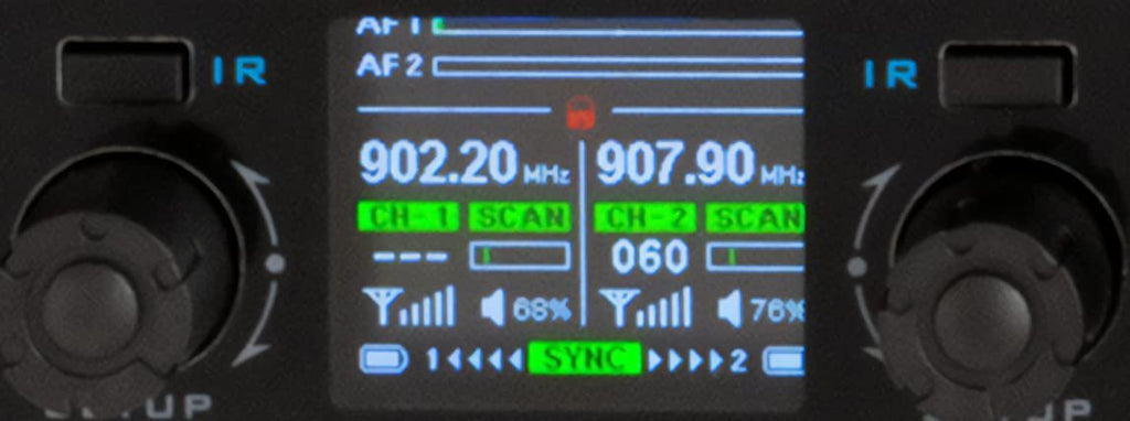 - Real time monitoring of microphones RF, audio, and battery levels directly from the receiver’s LED display