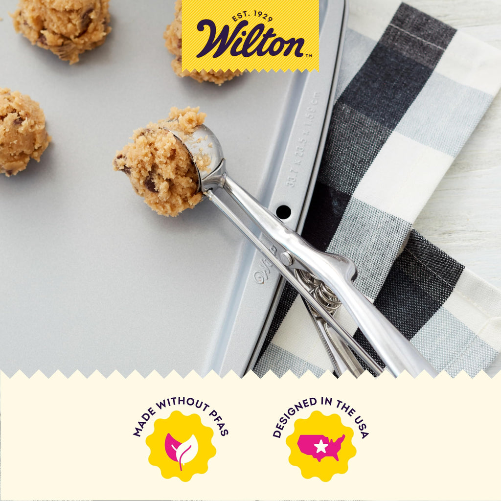 - READY, SET, BAKE: Keep cookies uniform in size and shape with help from our easy-to-use Wilton small stainless steel cookie scoop