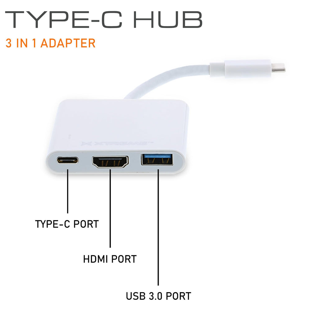 Xtreme Type C HubItem Package Dimension: 7.0078740086L x 3.93700787W x 0.787401574H inchesItem Package Weight - 0.110231131 PoundsItem Package Quantity - 1Product Type - MULTIPORT HUBType C hub