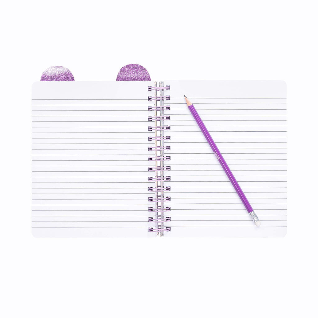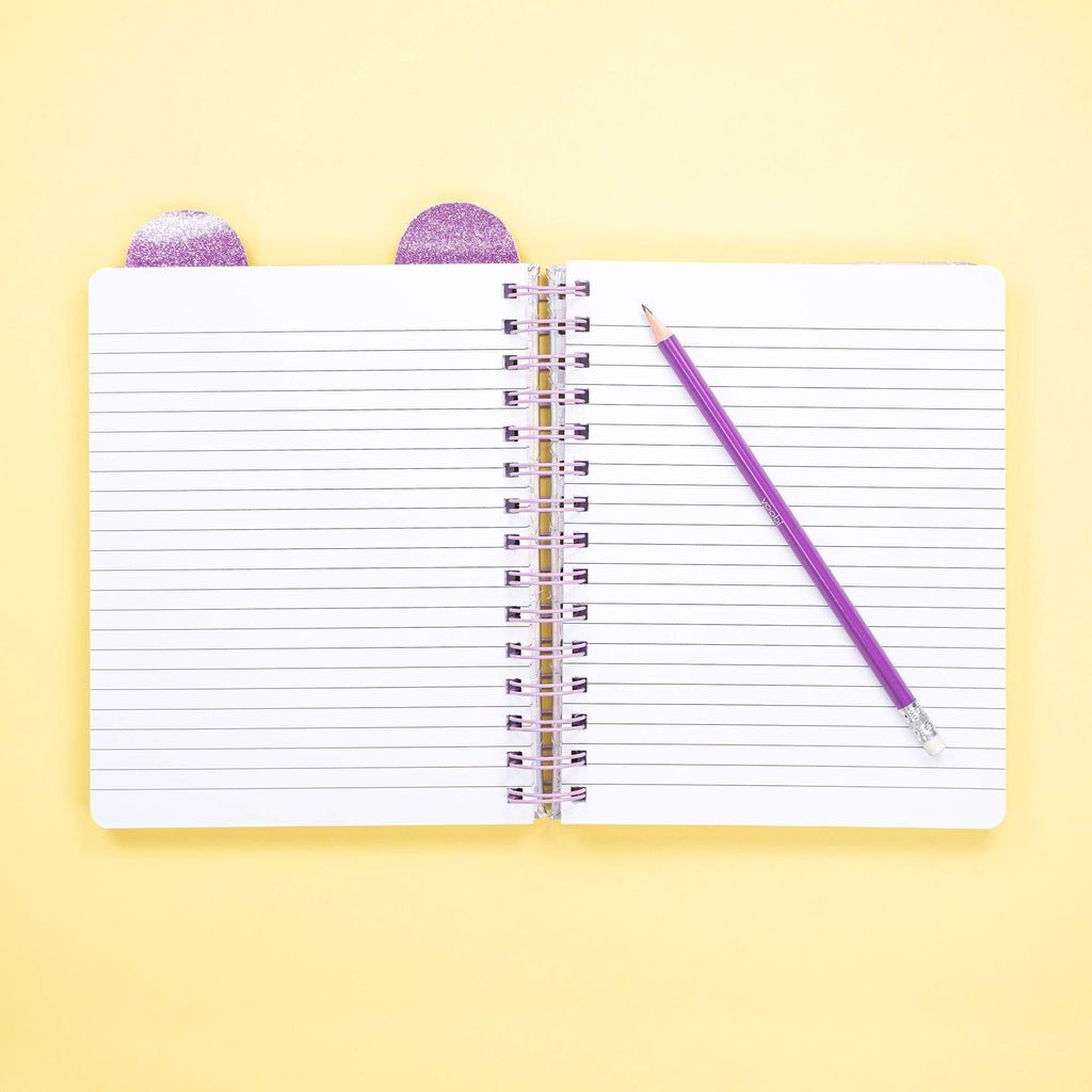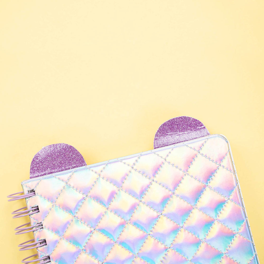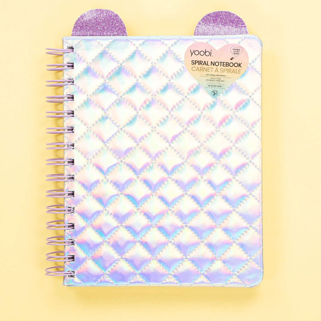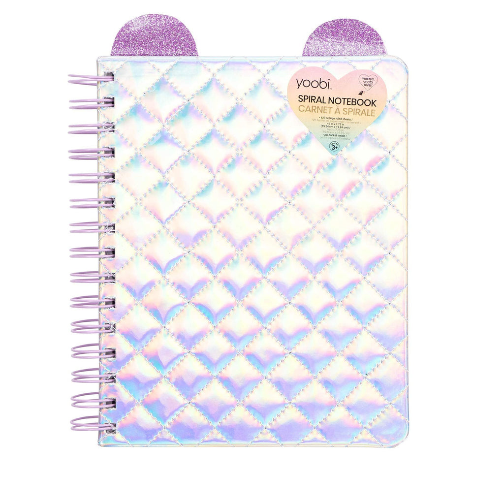 Yoobi | Spiral Bound Journal for Kids | Quilted Holographic Cover with Glitter Felt Ears | 120 College Ruled Sheets | 7.75" x 6" | PVC Free