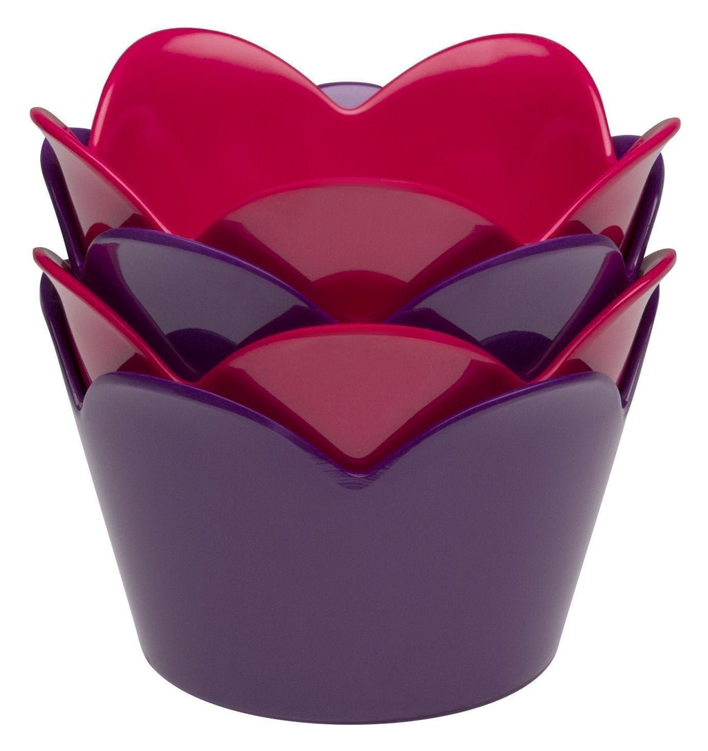 - 4 multi-color flower shaped cupcake dishes work great for parties or any occasion; pair with our flower appetizer plates, sold separately